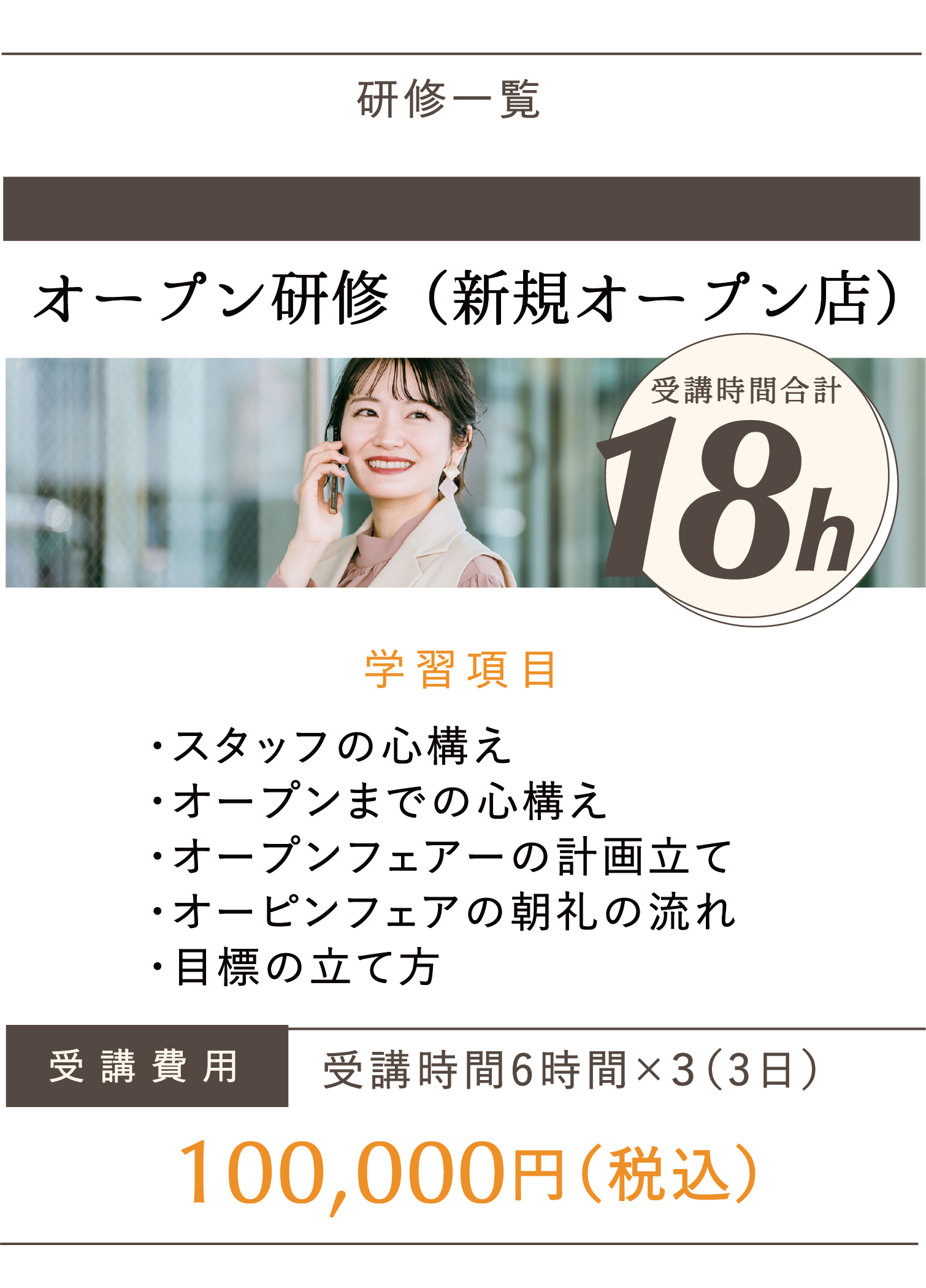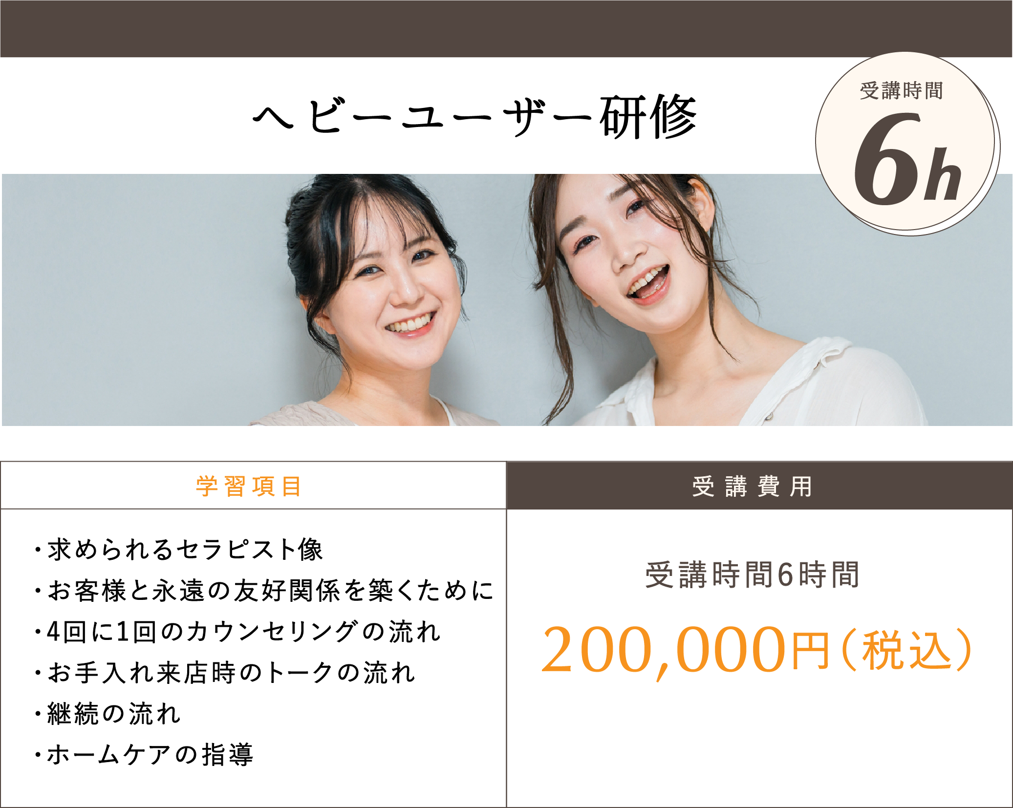 個人だけではなく、仲間で売り上げを達成する手法をご提案しております。また、その売り上げを継続する仕組みを構築していきます。新規集客ノウハウ、新規オープン研修、ヘビーユーザー研修、定期購入率アップ研修など、当社が20年の実績を積んできた確実で具体的な、誰でも即実行できる手法が学べます。 研修一覧